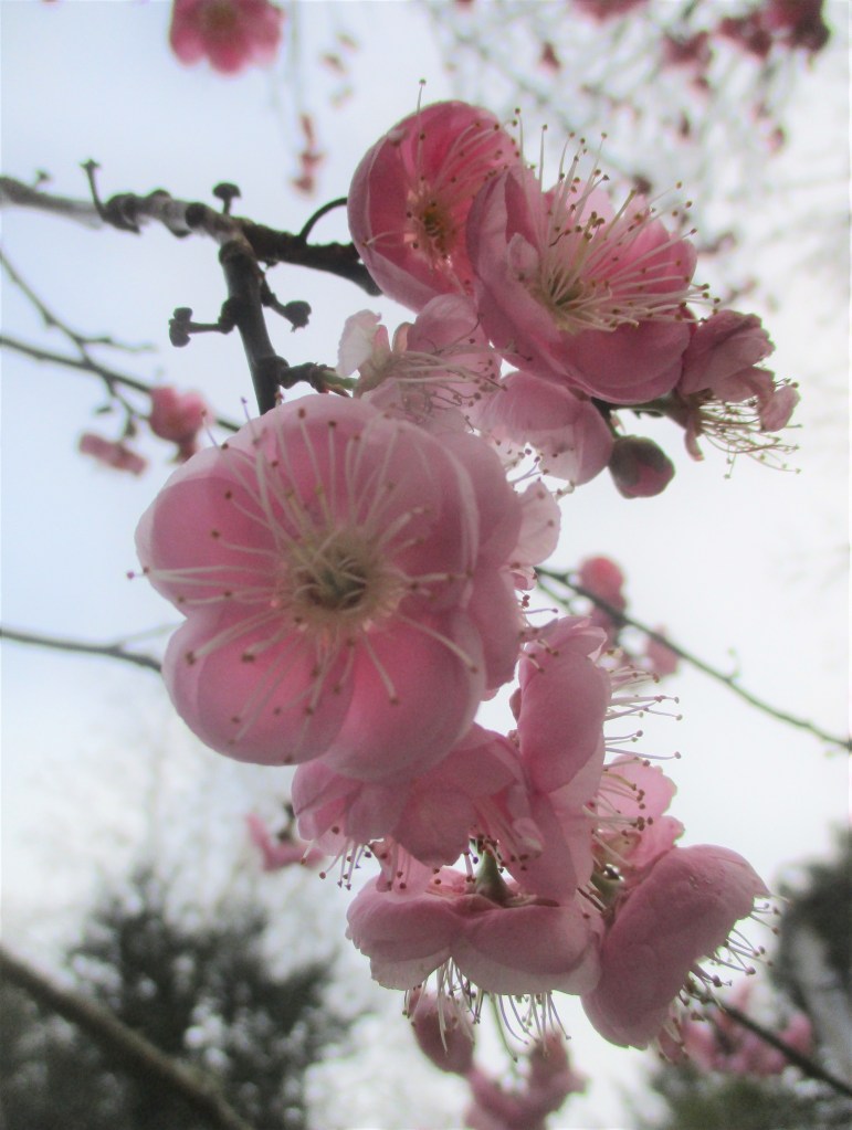 For example, flowering plum is like a sterile but prettier version of fruiting plum. It merely blooms impressively without subsequently fruiting. There is no need for dormant pruning to concentrate resources into fruit, or to compensate for fruit weight. When and if pruning becomes necessary, it can happen after any unwanted growth has contributed to bloom.