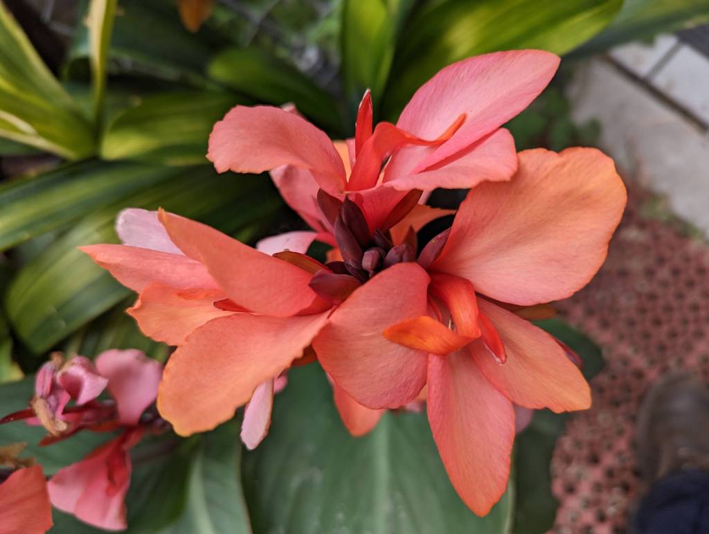 5. Canna ‘Cannova Mango’, like 3 and 4, is a Canna, but that is about its only similarity. I do not like it much because it is a modern cultivar, and it blooms with this weird color.